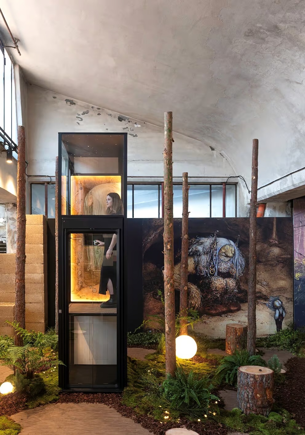 本次展覽由 Aritco 與義大利合作夥伴 Vimec 以及北歐設計師 Alexander Lervik 攜手策劃。Lervik 曾深度參與 Aritco HomeLift 的設計與客製功能開發。本次裝置以北歐森林為靈感,引領觀眾走進有巨魔與公主的奇幻國度。