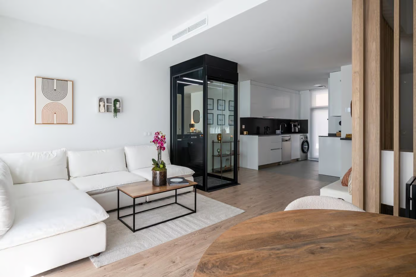 也因為這樣,電梯的線條、按鍵、燈光、介面看起來乾淨、舒服,不是刻意追求「造型」,而是順著功能長出來的。為了讓電梯能融入不同的家,Aritco 也與北歐藝術家合作推出 DesignWall 背牆。