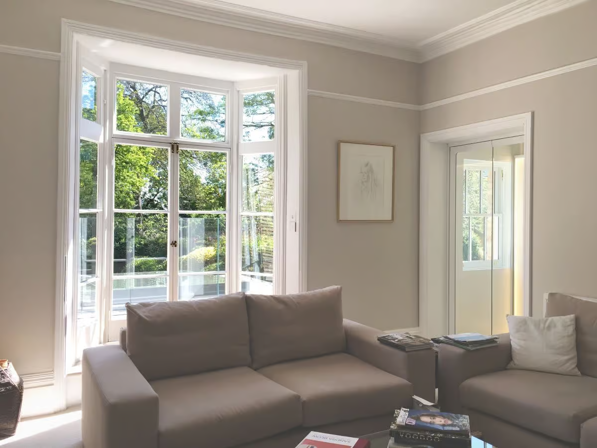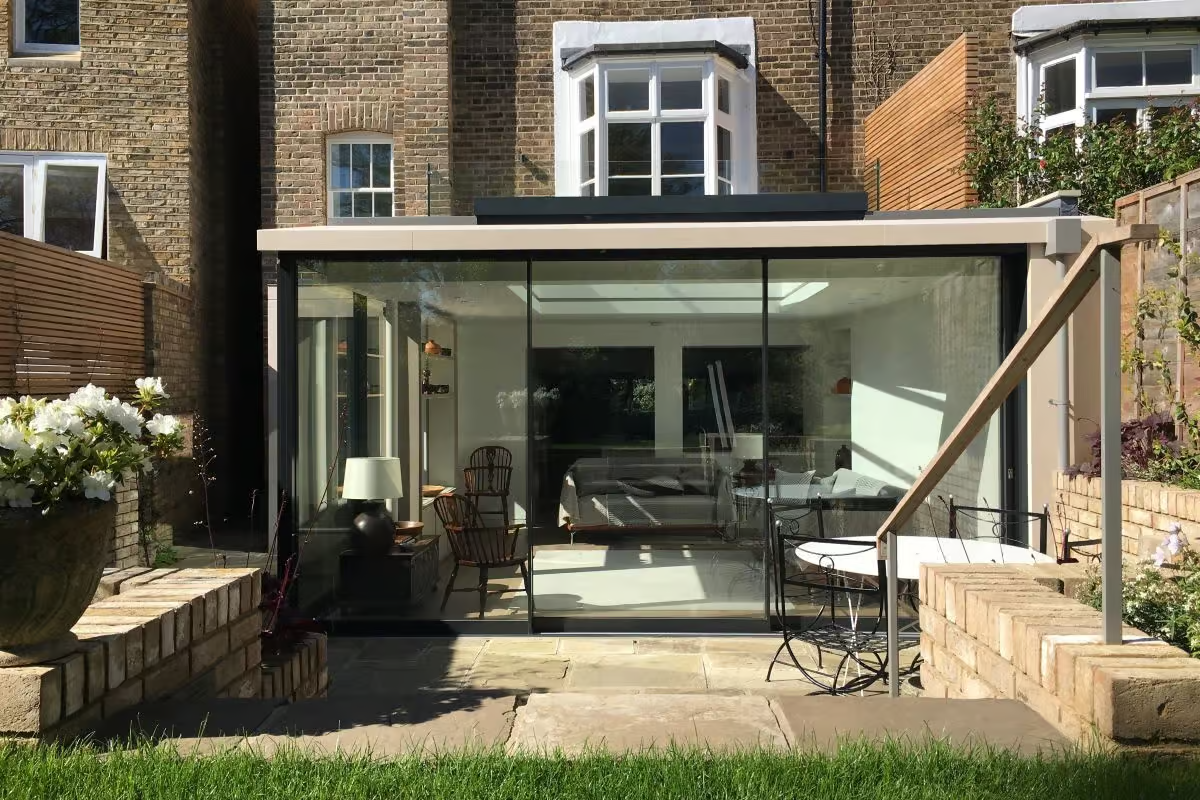 他們委託蘇菲・貝茲建築事務所,在擴建一樓的同時,一併解決無障礙需求。蘇菲選了Aritco家用電梯——線條簡潔,卻能同時融入維多利亞的古典底蘊,與全新的當代增建空間。電梯區域刻意留了落地玻璃,引光入室;內部是霧白玻璃背光,極簡乾淨,呼應新建築的語彙。梯口鑲了一圈木框,與上層樓既有的窗框一致,古典的溫度便悄悄延續下來。這部電梯無機坑、無機房,尺寸精巧,就安在原本堆放雜物的角落,幾乎沒更動任何原始格局。