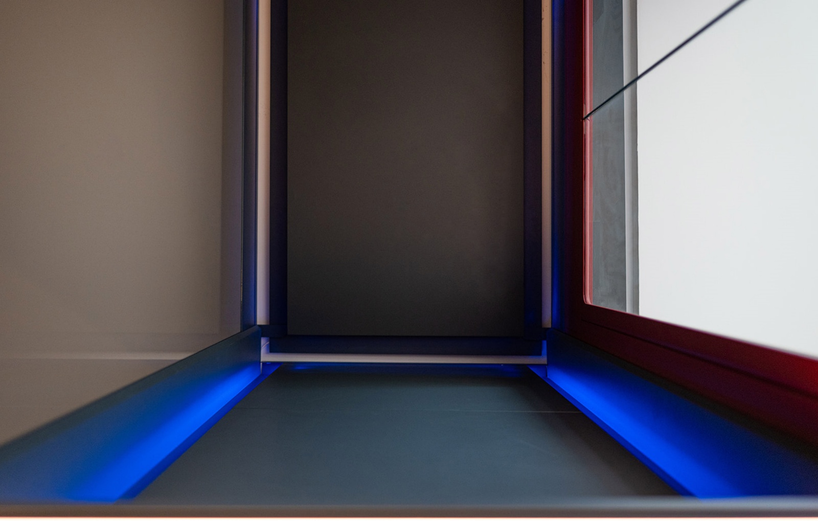 Aritco HomeLift 內建先進照明 DesignLight,為電梯井道打光、營造氛圍。